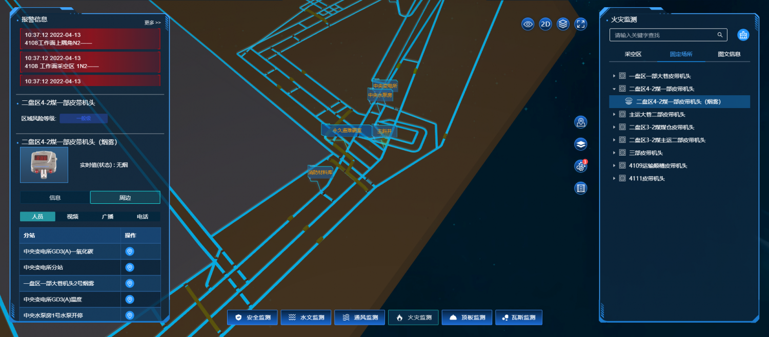 实时监测粉尘数据,系统能够进行异常状态报警,并在矿井GIS系统内具备对应的图标闪烁报警,同时实现声光报警,并在点击图标后能够迅速切换到报警地点的实时监测画面,提示相关人员对设备进行及时处理,避免安全生产事故;支持监测数据及报警信息统计分析。